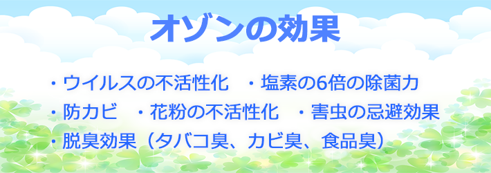 「オゾン(O3)」とは、大気中に存在し、空気を綺麗にする働き(脱臭・除菌)を持っています。