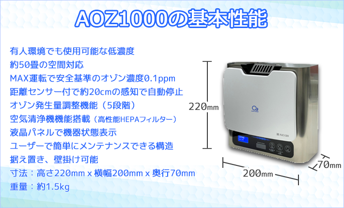 オゾン除菌消臭器「AOZ1000」で、感染症のリスク軽減