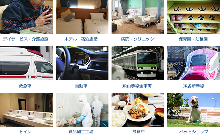 オゾン除菌消臭器「AOZ1000」は、病院や介護施設、保育園、幼稚園をはじめ、ホテル・飲食店のほか、JR山手線全車両や各新幹線内部など、様々な場所・施設で設置されています。 (外装ではなく本体内部にある基盤をそのまま使用している場合もあります。)